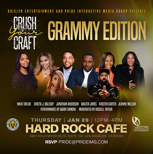 Crush Your Craft (CYC) is a creative empowerment platform and live workshop series designed to educate, connect, and elevate Black creatives and culture-shapers across entertainment, media, and entrepreneurship. CYC creates spaces where creatives gain direct access to industry leaders, receive practical, actionable education, and learn how to protect, own, and monetize their creative assets—without gatekeeping.